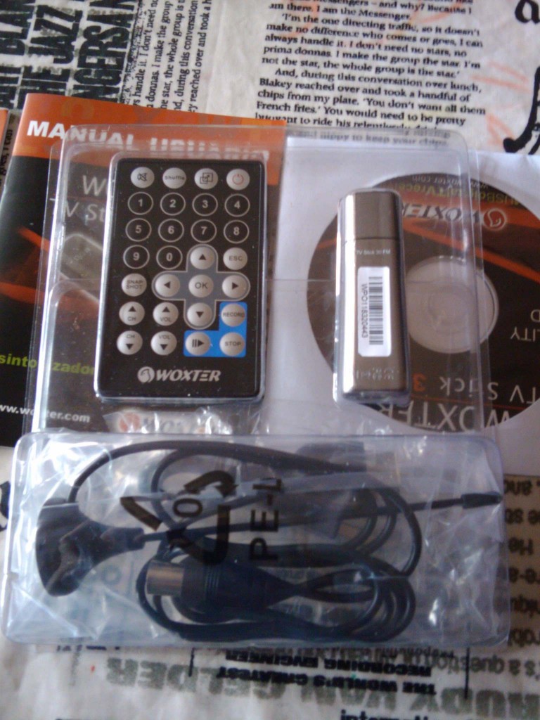 Viene con su correspondiente mando a distancia, una antena que en interiores no sirvepara nada y el cd con los drivers y los manuales.