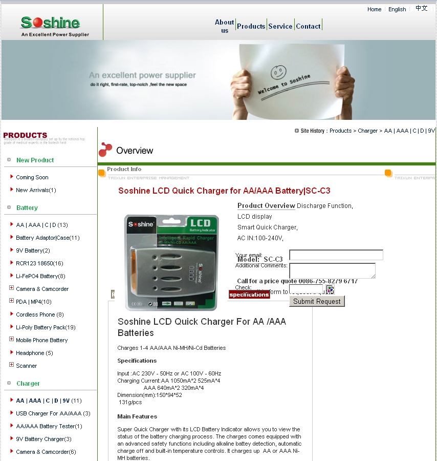 y dando una vuelta por dealextreme nos encontramos un cargador sencillo de la casa soshine de prestigio mundial, el soshine SC-C3 al que entienda chino que entre en http://www.soshine.com.cn si no, os dejo el enlace del producto en perfecto ingles en la imagen siguiente: