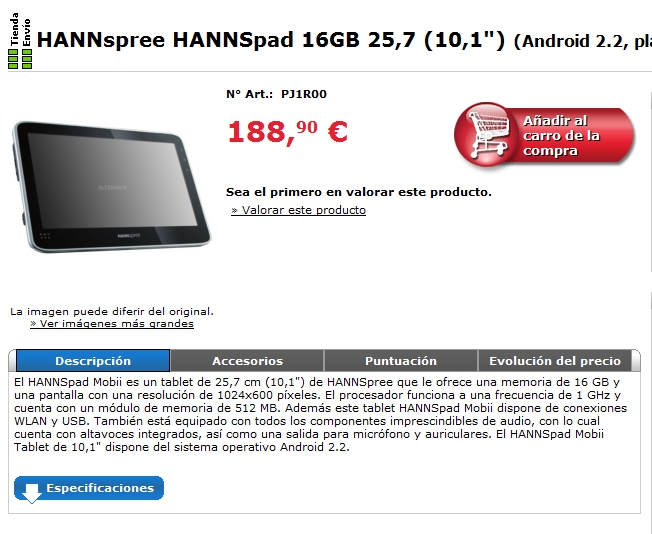 hannspad a 188.90 (por lo menos hoy)