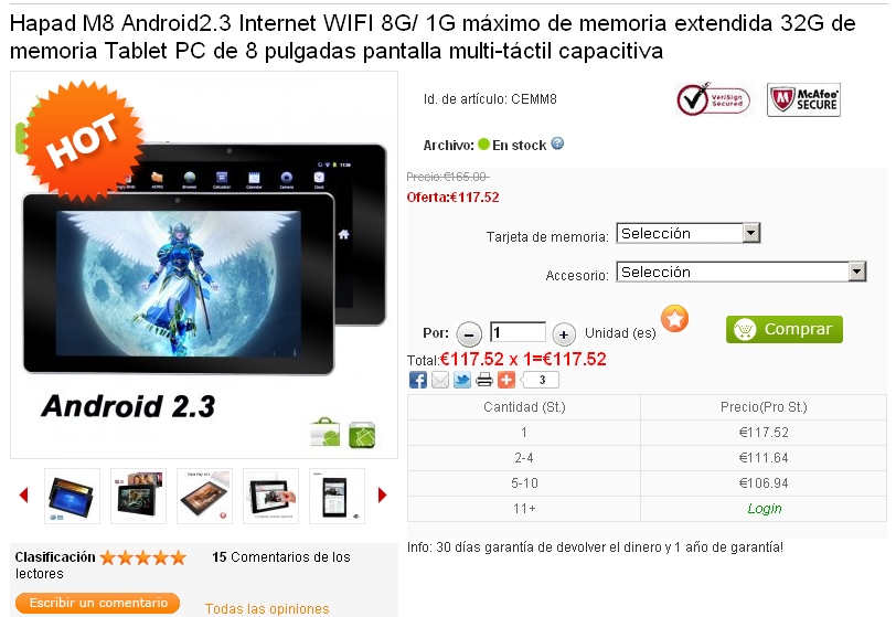 Gracias al foro de Htcmania encontramos esta tablet disponible en myefox.es a buen precio. ( a buen precio estaba cuando creamos el post, ahora se ve que han visto la ventas y lo han subido a 139.43) aun así sigue siendo buen precio pero si no tenéis prisa podéis seguir este post en htcmania donde estan viendo si consiguen un precio mas ajustado.