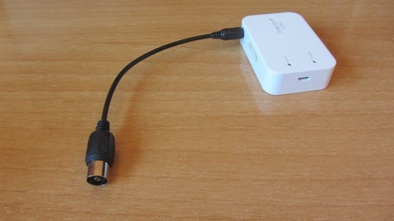 Ampliamos la review tras recibir el cable para conectarlo a la antena de casa, el cable lo podéis conseguir en ebay desde 1,5€ aproximadamente, la calidad mejora al conectarlo a la antena aunque en los canales hd en algunos tiene algunos cortes ( la señal donde lo he probado tampoco tiene mucha potencia con lo que quedaría probar en otro antena para ver diferencias)