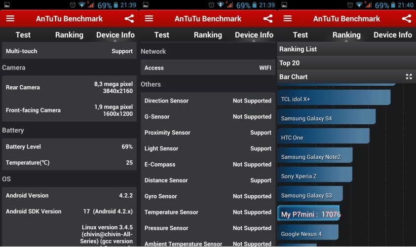 Tras pasarle el Antutu nos da 17076 puntos, puntuacion similar al THL W100S revisado anteriormente.