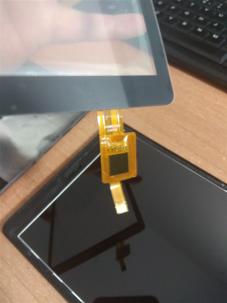 No pude grabar el proceso de cambio pero os dejo algunas fotos, tras quitar el cristal dañado solo habia que colocar y pegar el nuevo touch «con cuidado de no dejar marcas en el lcd», desmontar una pequeña placa para pasar el conector por debajo y conectarlo, volver a colcoar la placa y cerrar la tablet.