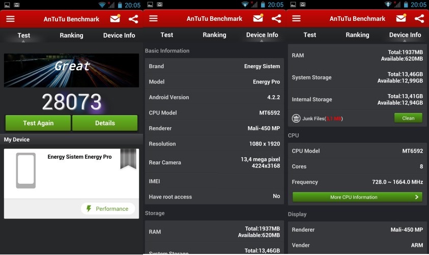 Nos ha faltado comprobar el NFC al no disponer de ninguna etiqueta o periférico compatible, podes encontrar mas información del terminal en la pagina oficial donde podremos adquirirlo por 249€, en caso de necesitar mas memoria podremos elegir el Energy Phone PRO Qi, por un poco mas (279€) tendremos el mismo terminal pero con 32GB de memoria interna, carga inalámbrica y MHL.