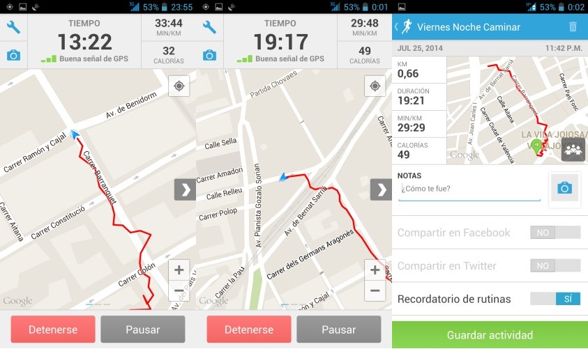 Las pruebas realizadas con Runkeeper han sido bastante correctas, aunque al principio se salía del trayecto al cabo de unos minutos registraba correctamente el recorrido.