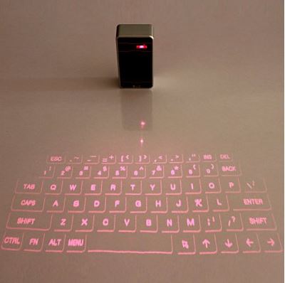 La ventaja de este tipo de teclados es la posibilidad de poder utilizarlo en casi cualquier superficie plana, el teclado se vera proyectado mediante laser en la superficie y actuara como si pulsáramos las teclas en un teclado normal pero con la ventaja que una vez apagado ocupa poco mas que un móvil de grande, es compatible con sistemas Windows,Linux, Ipad, IPhone y Android a partir de la 3.2, la batería de 700 mAh nos debe proporcionar hasta 200 minutos de escritura y se recarga en 120 min. el teclado es capaz de recibir hasta 400 caracteres por minuto
