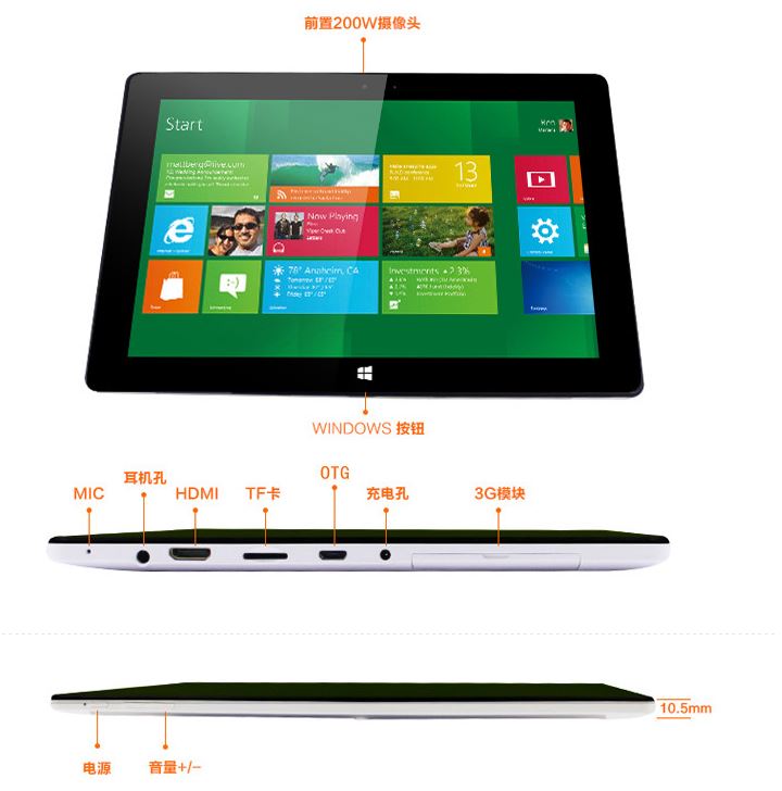 Si 32GB de almacenamiento nos parece poco cuando hablamos de tablets con sistema operativo Windows, tenemos alguna alternativa a buen precio con el doble de memoria interna, es el caso de la Meegopad F10, que aunque el precio es superior si la comparamos con modelos de menor tamaño, tiene algunos detalles que hacen que compense desembolsar un poco mas de dinero por ella, la pantalla es de 10.1 pulgadas (aunque la resolución sigue siendo HD), la memoria interna es de 64GB ampliable con tarjetas microSD, tiene GPS, dispone de una ranura para poder instalarle un modulo 3G ultrastick, sistema operativo Windows 8.1 PRO y la batería es de 8400 mAh.