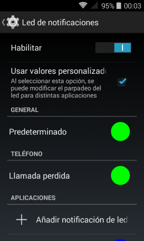 Configuración Led de Notificaciones