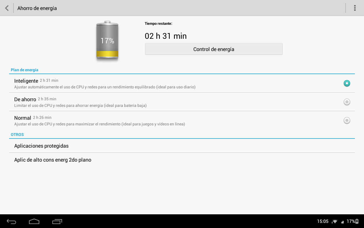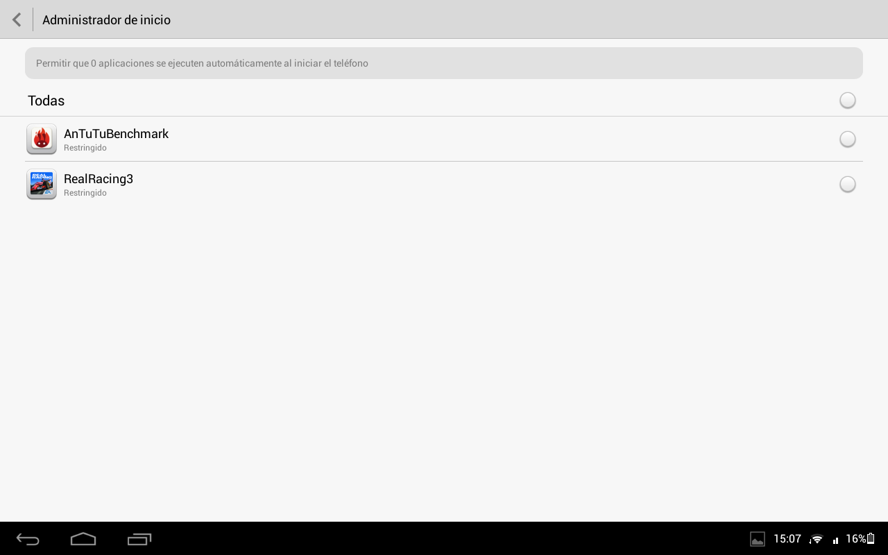En los ajustes podemos ver ciertos detalles que nos permiten configurar a nuestro gusto que aplicaciones queremos permitir el arranque cuando encendemos la Tablet o incluso la gestión de batería indicándonos también que aplicaciones esta teniendo un consumo intensivo.