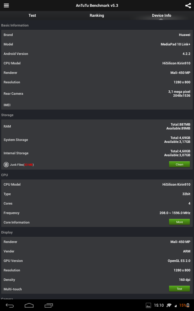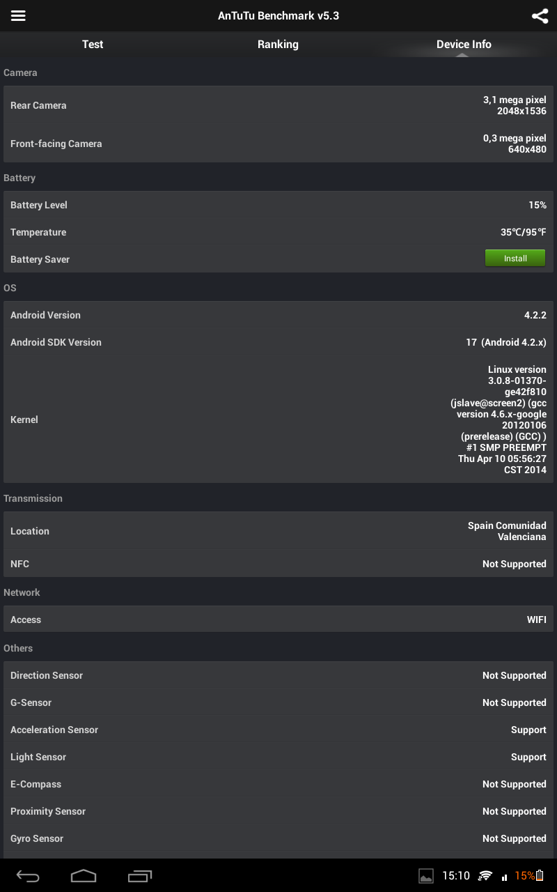 En cuanto al rendimiento pese a que al principio de la review la notaba con basante lag al pasar de ventanas, a respondido correctamente y en las siguientes pruebas respondía con suavidad, os dejo las capturas realizadas con Antutu y Phone Tester.