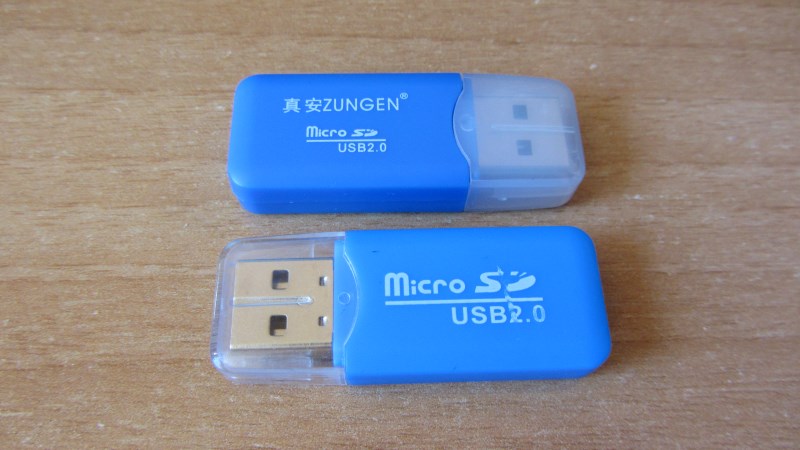 En ambos pedidos además de las tarjetas y el adaptador SD venia un lector de tarjetas USB 2.0