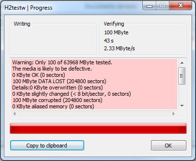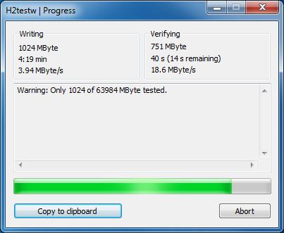 Como anteriormente procedo a pasarle un testeo con las aplicaciones  diskbench y h2testw, y estos han sido los resultados: