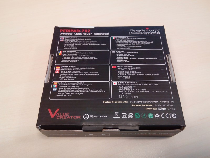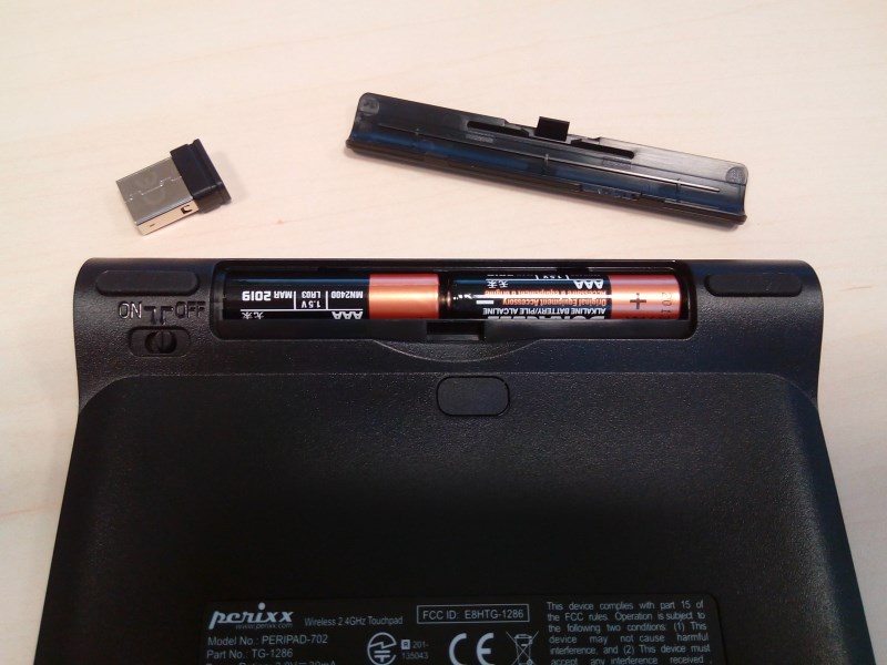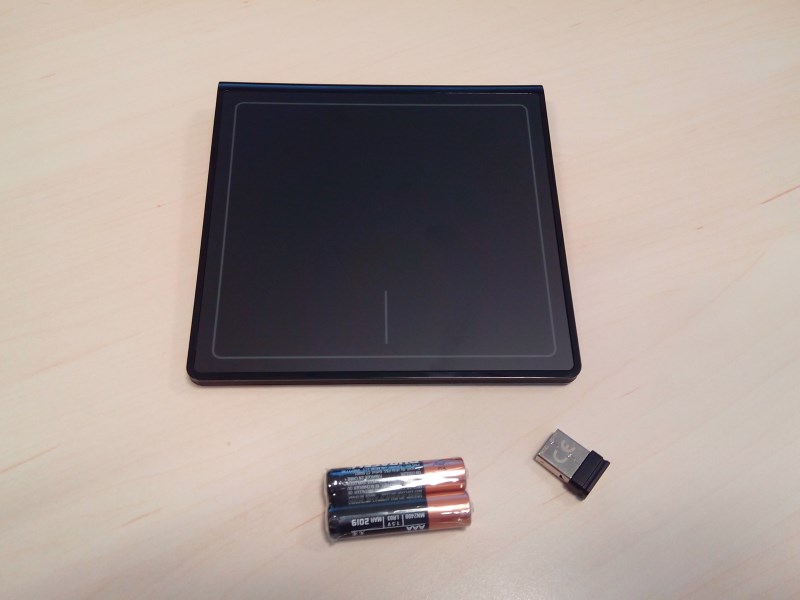 En la caja encontramos el touchpad, un manual, 2 pilas y el receptor rf.