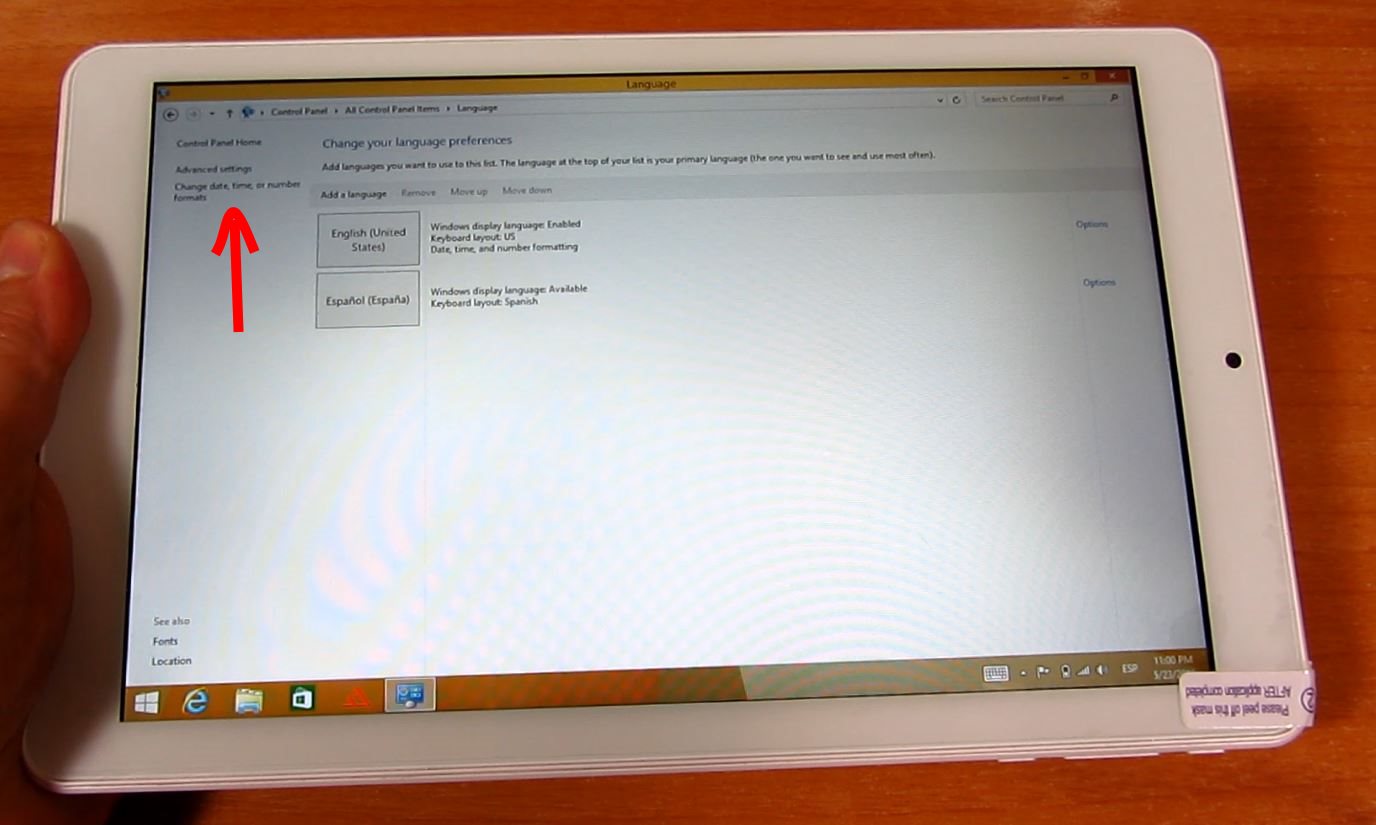 La Tablet puede venir en ingles o chino, para cambiar el idioma a español tendremos que entrar en el panel de control, localizar el icono de idioma y añadir el paquete de idioma que queramos «Add a Language«, tras añadir el paquete de idioma podremos predeterminarlo.