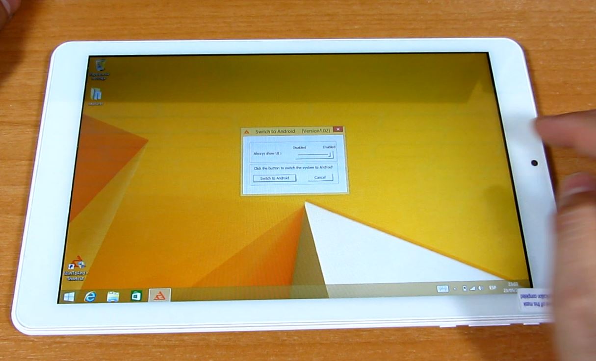 En caso de querer arrancar de nuevo en android tenemos un acceso directo tanto en el escritorio como en la barra de tareas, el acceso con 3 triángulos rojos que tras ejecutarlo podemos forzar el reinicio en Android «Switch to Android«.