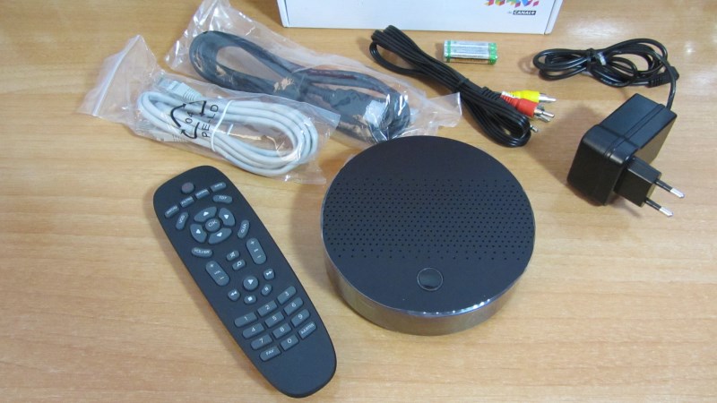 En la caja encontramos todo lo necesario para hacerlo funcionar, el receptor y todos los cables necesarios, el alimentador, cable AV con audio y video, cable HDMI, cable de red, el mando y un par de pilas para su funcionamiento.