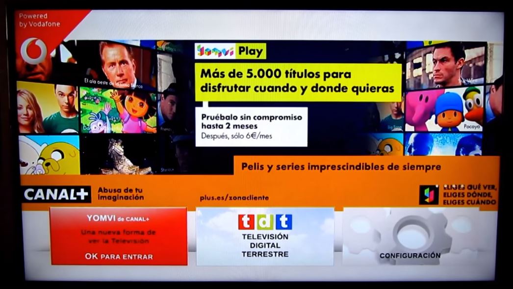Estas vacaciones he tenido la ocasion de probar el dispositivo Vodafone Box, con el podremos ver la tdt y canales digitales a través de Yomvi en televisores o monitores, el dispositivo Vodafone Box es compatible con líneas de fibra o vdsl y es gratuito actualmente hasta final de año al contratar una alta nueva de ADSL/FIBRA con Vodafone, el servicio Yomvi de Canal+ tambien esta disponible en altas con Movistar.