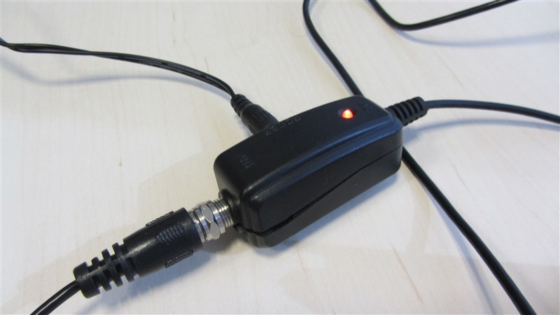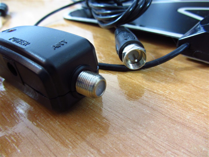 En la caja viene todo lo necesario para su funcionamiento, la antena, un conector conversor de tipo F a coaxial, el adaptador con entrada de alimentación al que conectaremos la antena con su conector F y por otro lado el conector RF a nuestro sintonizador tdt o tv, y el cargador con enchufe europeo.
