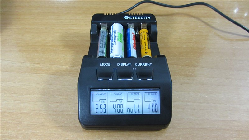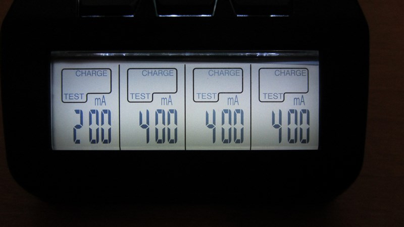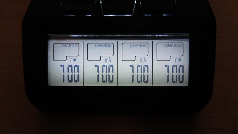 Para realizar la carga de las pilas el cargador puede proporcionar una intensidad de carga de entre 200 y 1000 mA si tenemos solo pilas en los slots 1 y 4, si colocamos alguna pila en el segundo y tercer slot la máxima capacidad de carga será de 700 mA.