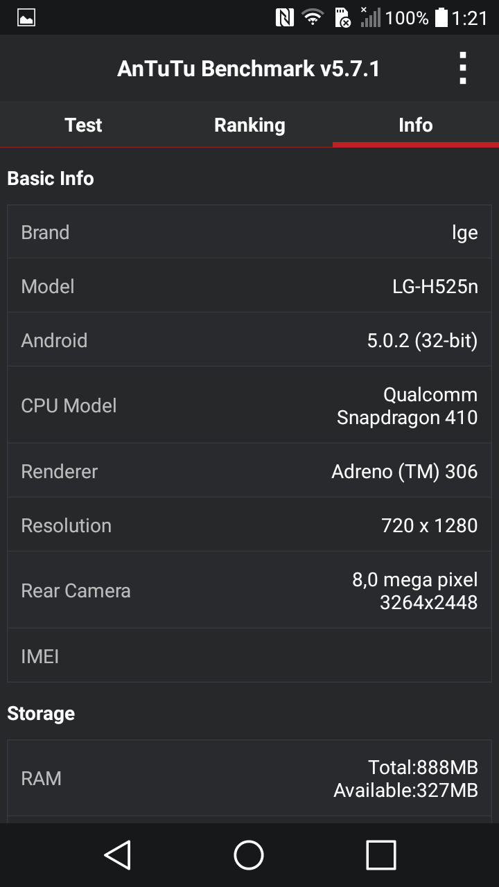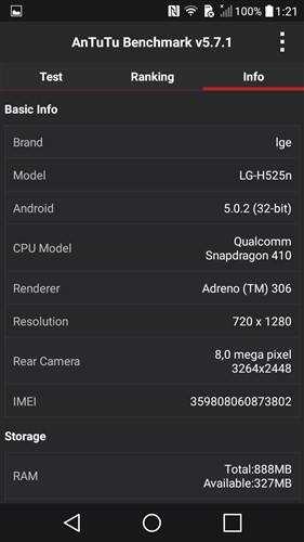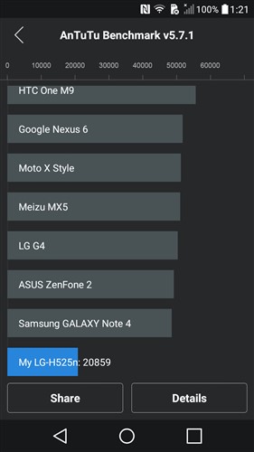 En las pruebas realizadas con Antutu consigue una puntuación de 20859.