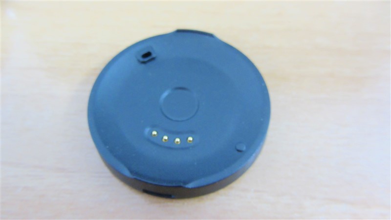 En la parte trasera podemos ver el sensor de ritmo cardíaco y los conectores de carga de la batería.