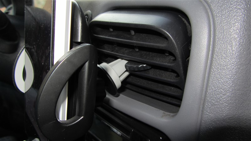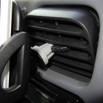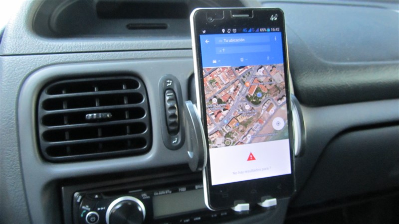 La colocación en el coche dependerá del tipo de rejilla de aire de nuestro coche, en mi caso las rejillas de mi clio no están demasiado católicas y el peso del terminal las hace ceder hacia abajo, aun así no hay problema ya que el soporte podremos rotarlo 360 grados para situar el terminal como queramos.
