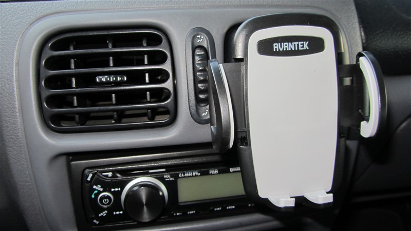 Para llevar nuestro smartphone visible en el coche podemos encontrar distintos soportes, algunos de ventosa, otros colocados en la ranura del cd y otros como el QP-2 de Avantek que podremos colocar en la rejilla del aire gracias a una pinza de plástico semirigido.
