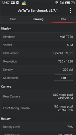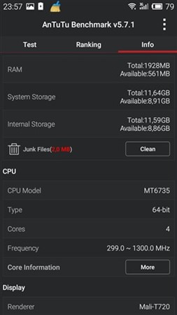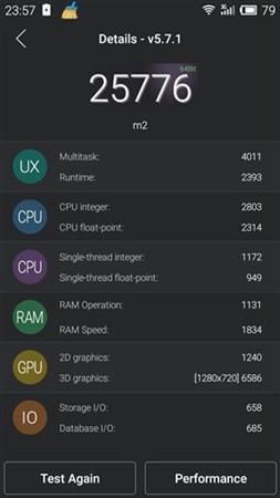 En las pruebas realizadadas antutu consiguió 25776 puntos.