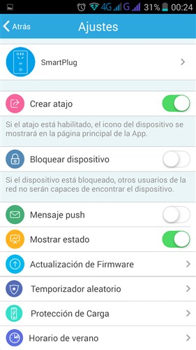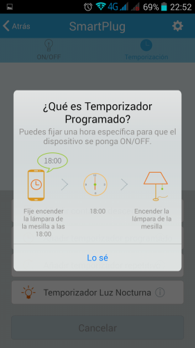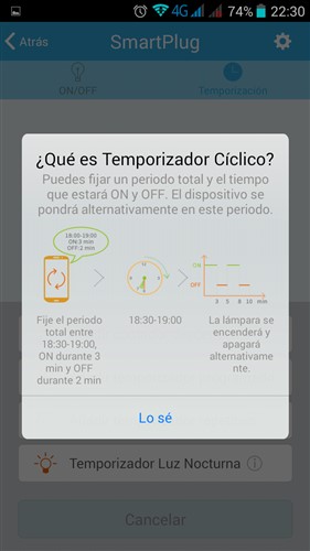 Aquí tenéis algunas capturas de la aplicación, para emparejarlo es muy sencillo, una vez instalada la aplicación en nuestro terminal introduciremos la contraseña de nuestra red wifi al mismo tiempo que enchufamos el enchufe, empezara a parpadear rápidamente el led y en unos instantes deberá localizarlo en la aplicación, lo seleccionamos y ya tendremos controlo sobre el, desde la aplicación podremos cambiar todo tipo de ajustes, programar encendido en diversos días, añadir temporizadores de encendido o de apagado, activar el encendido de led nocturna de forma repetitiva o días concretos, etc.