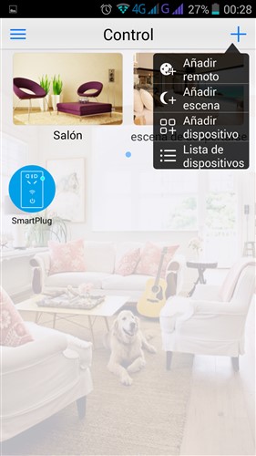 Detalle pantalla principal de la aplicación para Android con el Enchufe configurado, podremos añadir nuevos dispositivos de la misma marca ya sean enchufes o otro tipo de sensores.