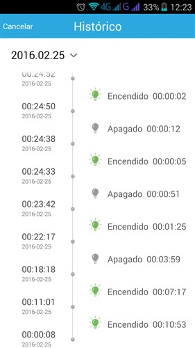 Aquí podéis verlo encendido desde la aplicación, el led azul se ilumina y podremos saber que esta proporcionado corriente.
