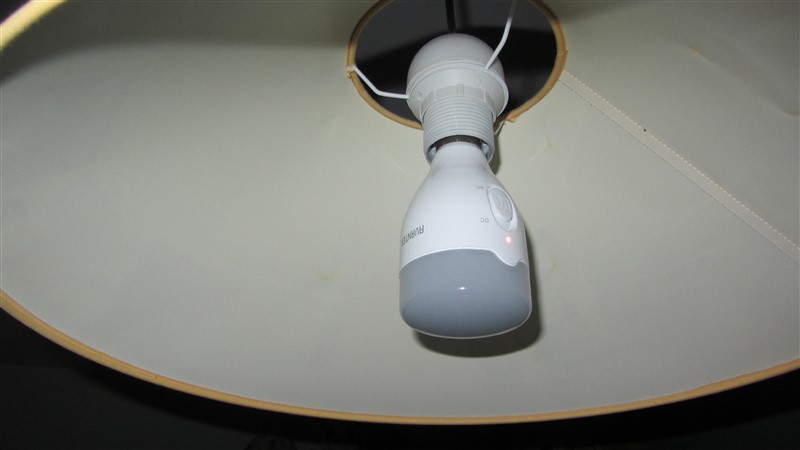 Colocada en la base podremos encenderla situando el botón en la posición DC para usarla con la batería interna o en AC cuando la enrosquemos en una lámpara o cuando la estemos cargando con el cable micro USB.