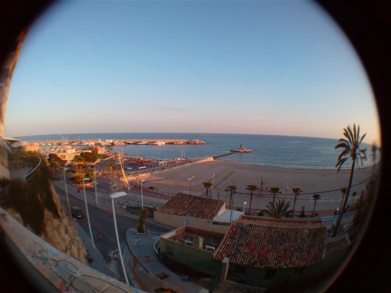 El Ojo de pez utiliza la misma pinza de color gris, tendremos que centrarlo correctamente para que la zona negra quede centrada, los efectos de este objetivo son bastante buenos, podremos utilizarlo también con la cámara delantera de nuestro terminal para conseguir mayor ángulo de visión.