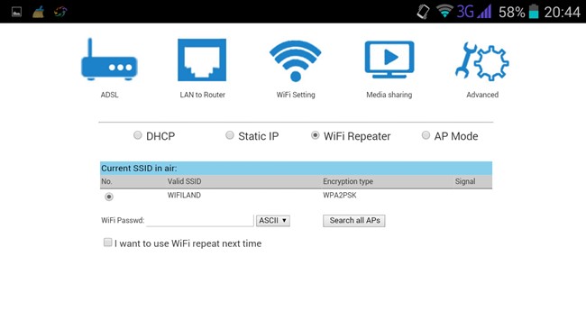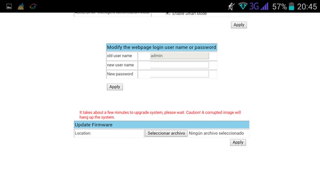 Si accedemos a la pagina de administración vía navegador «ip 192.168.169.1» tenemos acceso a la configuración de red para poder cambiar el tipo de funcionamiento a nivel de red, cambiar la contraseña de acceso, actualizar el firmware, etc, os dejo con algunas capturas de la pagina.