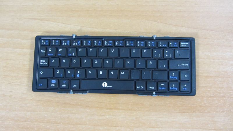 Plegado ocupa poco mas que el tamaño de un móvil, desplegado tendremos un teclado qwerty con teclas de funciones, cursor e incluso con la tecla Ñ, podremos utilizarlo sincronizándolo a través de la conexión de dispositivos Android, Ios y Windows.