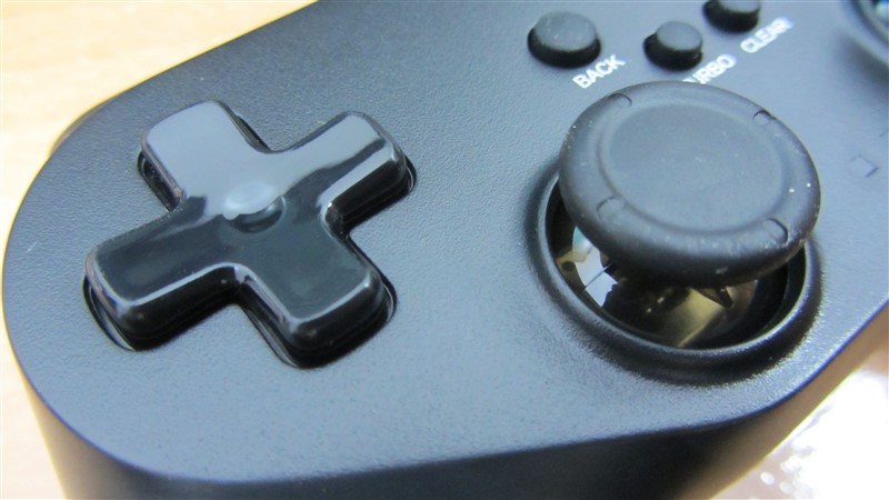 En la parte superior tiene el resto de botones, un botón central con el logo de la compañía y cuatro botones (Back, Turbo, Clear y Start), en la parte inferior tiene dos leds, en las pruebas realizadas al conectarlo se iluminaba solo el izquierdo pero tras pulsar el botón central se ilumino el segundo led y funcionó correctamente tanto en Android como en Windows.