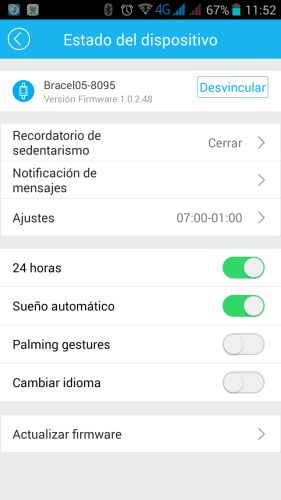 Tras 4 días y medio aproximadamente he tenido que volver a cargar la pulsera, en ese tiempo la he llevado sincronizada por bluetooth la mayor parte del día, entre los aspectos positivos personalmente me ha gustado sus dimensiones y la posibilidad de poder controlar algunos deportes concretos.