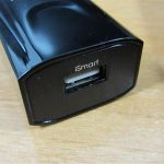 En la parte frontal vemos todas las conexiones, dispone de 3 conexiones USB capaces de cargar de forma simultanea hasta 3 dispositivos, de derecha a izquierda conseguiremos 5V – 2.4A, 5V – 2.1A y el tercero 5V – 1A, un total de 5.5A, para recargar su capacidad dispone de un conector microUSB.