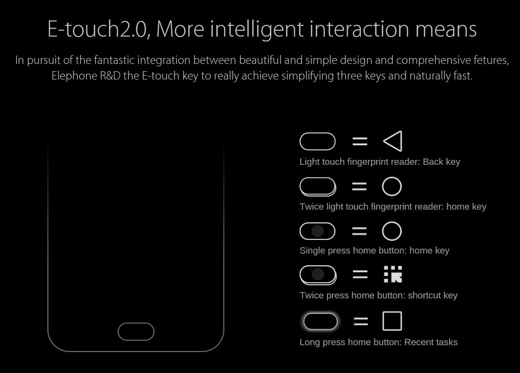 A través del botón central y con un nuevo sistema denominado E-Touch 2.0 podremos controlar distintas funciones según el tipo de toque o forma de presionarlo ( 1 toque ligero = volver, 2 toque ligero = home, etc. ).