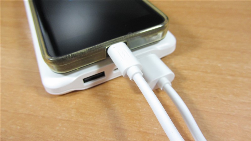 En la caja encontraremos un pequeño cable para cargar nuestros gadgets, entre sus ventajas podremos cargar el powerbank y cargar nuestros móviles al mismo tiempo, ademas al tener un puerto de carga con 2.1A se recargara de forma mas rápida.