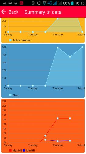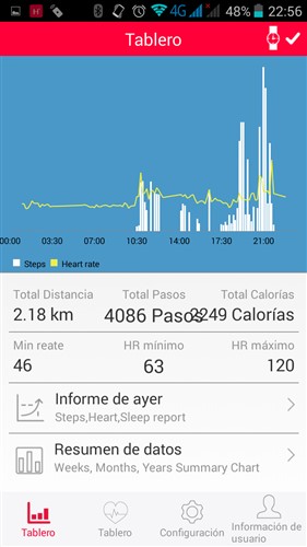 - Me ha gustado la forma de mostrar las capturas de ritmo cardiaco y los pasos en la aplicación, podremos observar fácilmente el estado cuando no nos movemos.