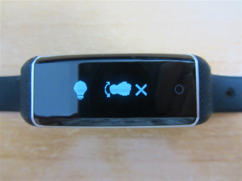 Para controlarla tenemos un pequeño circulo en la parte inferior de la pantalla con el cual podremos interactuar con la pulsera, si mantenemos pulsado se encenderá si esta apagada o podremos activar la función de ritmo cardiaco, la activación por gestos, o en el menudo de opciones «settings» apagar la pulsera o resetearla.