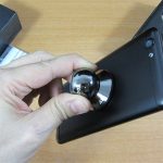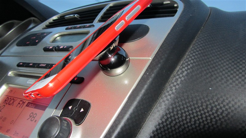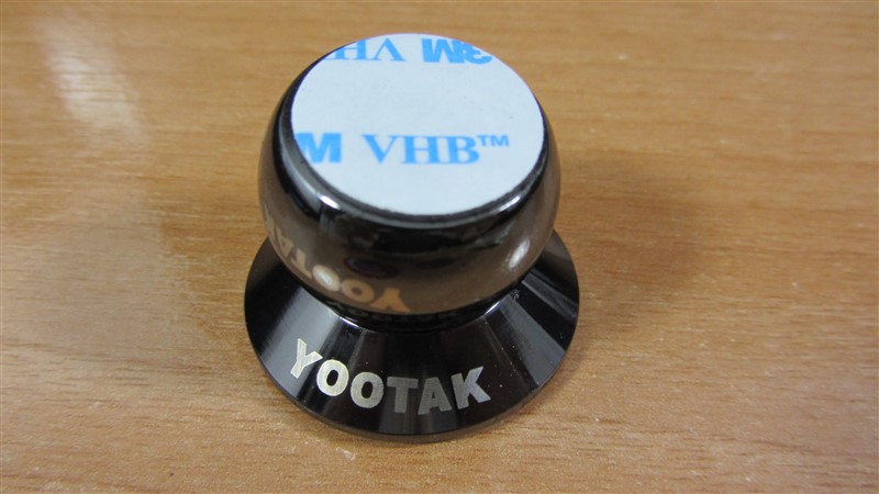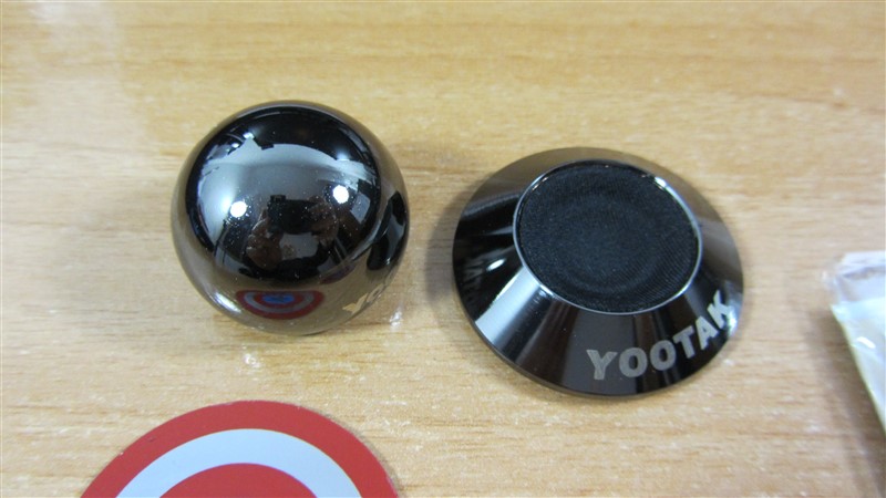 La bola metálica tiene una base plana donde va colocada la pegatina 3M, según instrucciones hay que calentar la bola un poco con el aire acondicionado a 26º para facilitar la actuación del pegamento al colocarla en el salpicadero o una superficie plana.