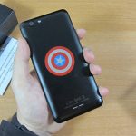 El circulo rojo es de goma, facilitando así la colocación del terminal, ya sea pegando uno de los discos en la parte trasera del terminal o colocándolo entre la funda y el móvil.