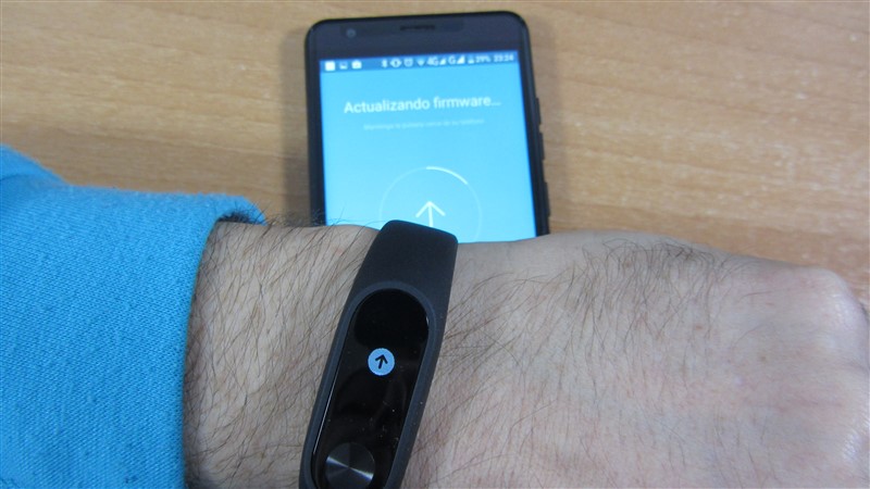 Una vez la tengamos cargada completamente » suele venir sin carga » procedemos a instalar la aplicación disponible en el market y sincronizar la pulsera con nuestro terminal, tras la primera sincronización me pidió actualizar el firmware.