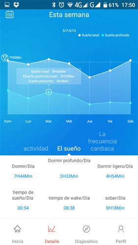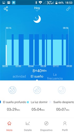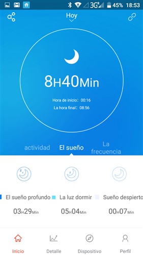 El modo sueño la pulsera detectara cuando nos vamos a dormir y cuando nos despertamos de forma automática, en las pruebas realizadas las mediciones fueron correctas.