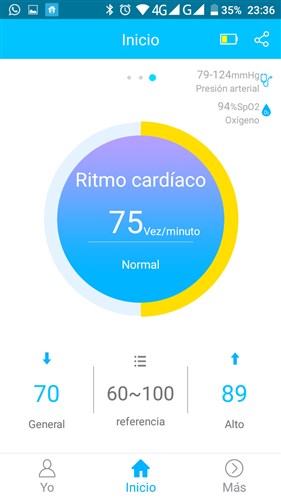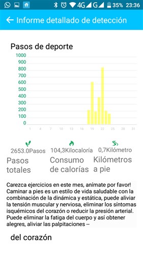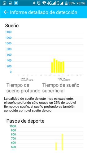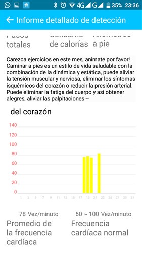 En histórico nos permite ver los resultados de distintos días pero tampoco es que lo muestre de forma clara, en este aspecto debería mejorar ya que es problema de la aplicación mas que de la pulsera.