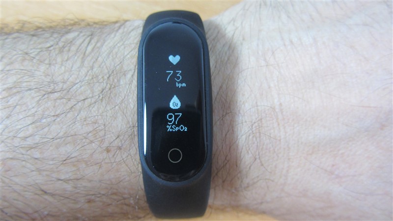 Aquí podéis ver las diferentes pantallas de la pulsera, pasando por la hora con información de día y batería, pasos, distancia, calorías, pulso y oxigeno y por ultimo la presión sanguínea.