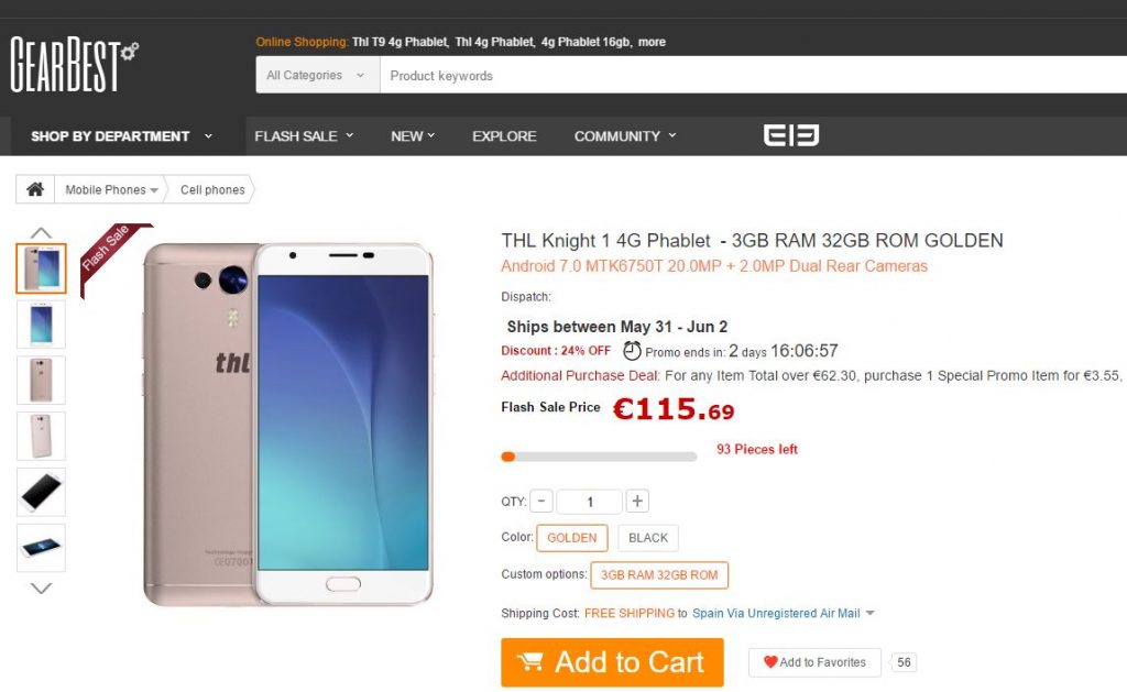 Podemos encontrarlo por 115€ en Gearbest en dos colores (Negro o Dorado) con fecha de envio a partir del próximo 30 de mayo.