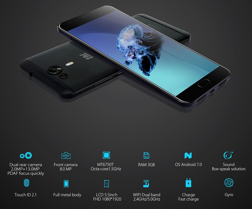 El diseño puede resultarnos familiar, se asemeja bastante a los terminales de la compañía meizu, integra un procesador de mediatek MT6750T de ocho núcleos funcionando a 1.5 GHz, cuenta con una pantalla de 5.5 pulgadas con resolución Full HD (1920 x 1080 pixels), cuenta con 3GB de RAM y 32GB de memoria interna ampliable con tarjetas microSD.